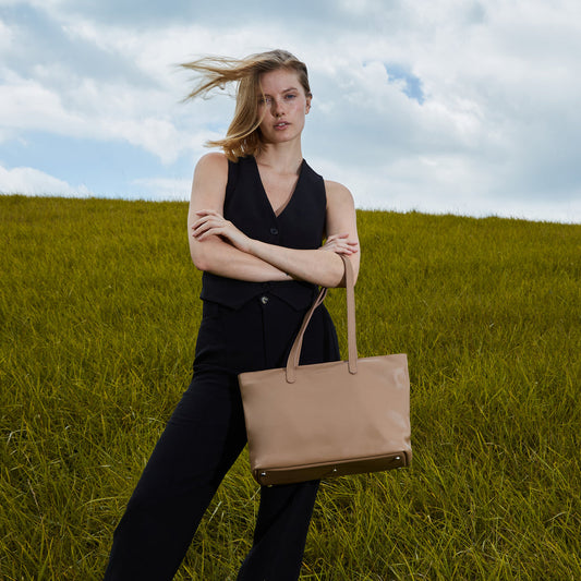 Spacious women's shopper bag with a laptop compartment made from classic leather Emeli