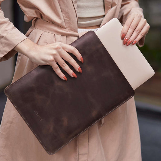 FREE PORT PLUS - Vertikální pouzdro pro MacBook z vintage kůže s plstěnou podšívkou - Skladem