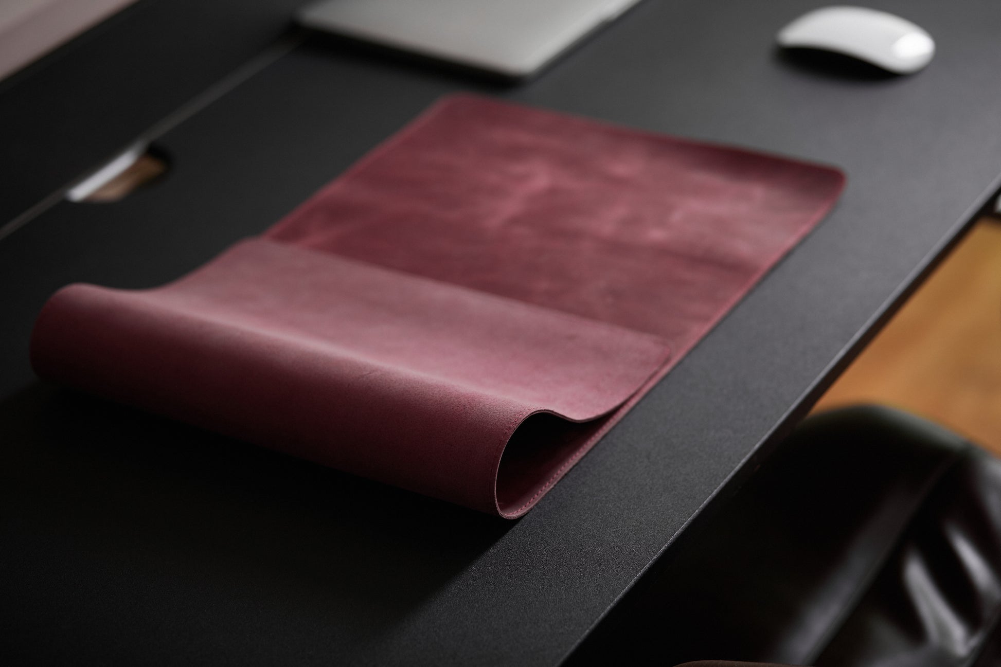 Beautiful leather desk Pad! The leather has just the right strength and slight signs of use can be easily rubbed away. I would have liked to have taken the desk Pad a little bigger if it had been possible!
